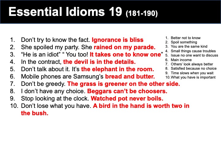 Essential idioms 19 Tin liên quan Essential Idioms 1 Essential idioms 2 Essential idioms 3 Essential idioms 4 Essential idioms 5 Essential idioms 6 Essential idioms 7 Essential idioms 8 First1234End